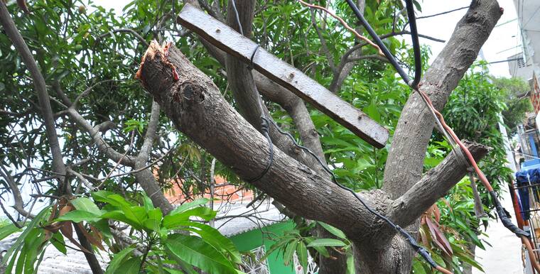 'Ellos llegaron aquí el año pasado para poner los nuevos cables, pero solo colgaron algunos, y lo dejaron a la mitad', contó el usuario, mientras señalaba las instalaciones eléctricas que cuelgan en su casa.