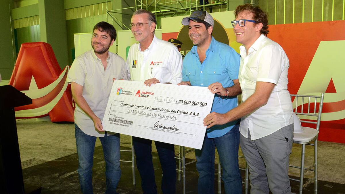 El Gobernador del Atlántico, Eduardo Verano De la Rosa, hizo entrega este viernes de un cheque simbólico por 30 mil millones de pesos al Centro de Eventos y Exposiciones Puerta de Oro, el que según él 'será un sitio mágico'.
