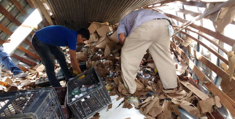 El vehículo, de placas TDU041 color blanco, estaba cargado de licor. Moradores de Las Flores aprovecharon para hurtar 15 cajas de cocoanís.
