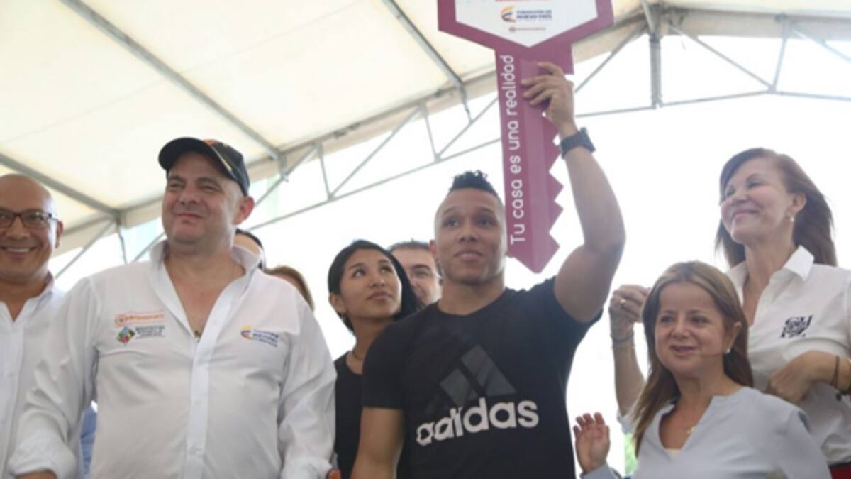 El vicepresidente de la República, Germán Vargas Lleras, y la ministra de Vivienda, Elsa Noguera le entregaron ayer al pesista vallecaucano, Luis Javier Mosquera, –ganador de la medalla de bronce en los olímpicos de Río 2016– las llaves y escrituras de su nueva vivienda ubicada en el municipio de Yumbo (Valle del Cauca).