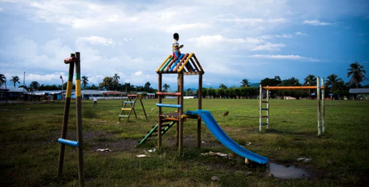 Son las dos de la tarde. El ocaso comienza a caer en Batata en medio del sonsonete de los gallos y el estruendo de las nubes grises. Sentada en una silla de plástico, Iris observa de reojo la cancha y un breve suspiro emerge de ella. Cuatro de sus 17 nietos corren en el lugar, mientras el fogaje lo permea todo. Años atrás –recuerda– sus vecinos eran quienes corrían por las calles del pueblo y sudaban del miedo antes de ser capturados por los armados. Cuenta que llegaban a las puertas de las casas, los amarraban y llevaban hasta la plaza –hoy la cancha– para fusilarlos. Si la persona se escondía o no quería salir, era asesinada en el interior de la vivienda. Los sobrevivientes de la violencia en Batata, explica entonces Iris como si se tratara de un fenómeno divino, tuvieron 'resistencia con la ayuda de Dios'.