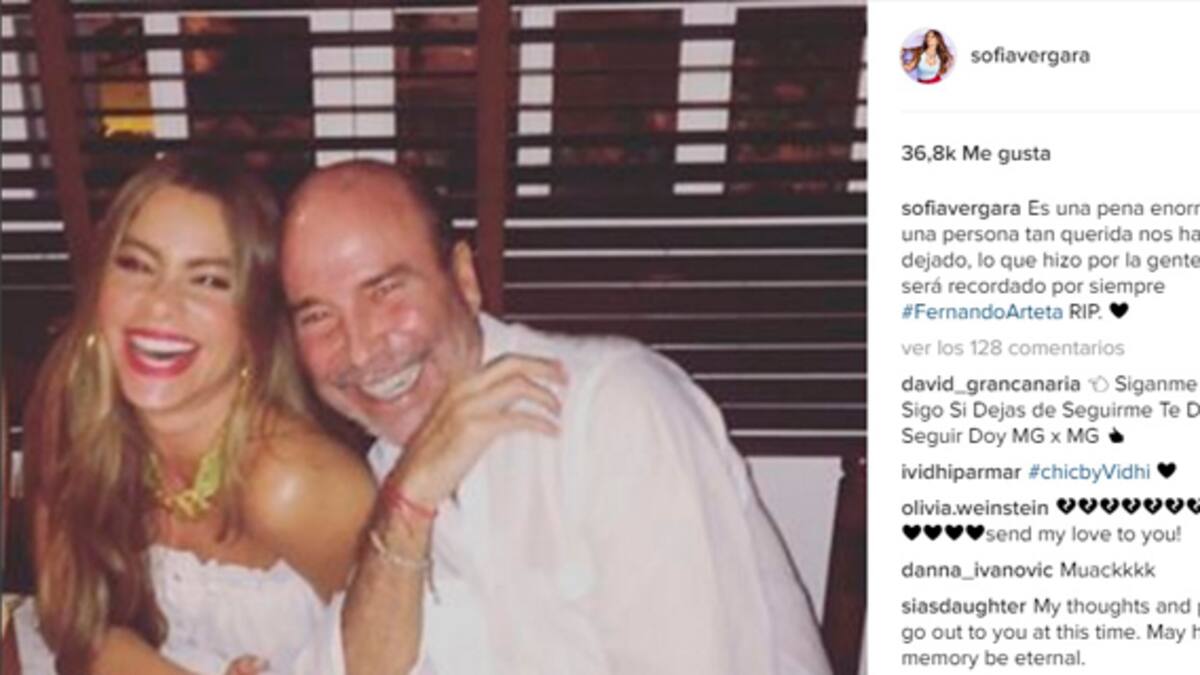 La actriz barranquillera Sofía Vergara se unió a los mensajes en honor a la memoria del empresario Fernando Arteta, quien murió el pasado domingo en un accidente al volcarse en una cuatrimoto en el sector Boca Ratón, jurisdicción del municipio de Tubará.