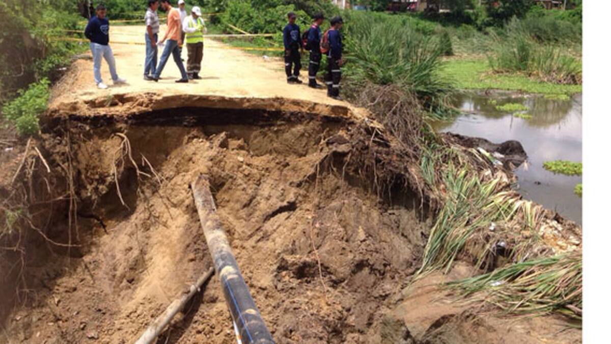 Marbel Cantillo, habitante del municipio, dijo que el desplome se dio por el taponamiento de una tubería. 'por ahí se filtra el agua y las basuras de uno de los dos humerales que se llama' Las hermanas'.