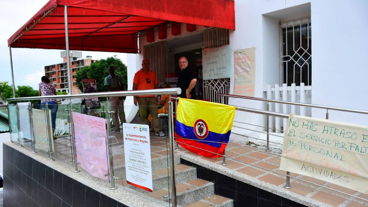 Trabajadores de la oficina de registro de instrumentos públicos, ubicada en la carrera 42d con 80, realizan cese de actividades debido a que no existen las condiciones adecuadas para prestar un servicio óptimo a la ciudadania.