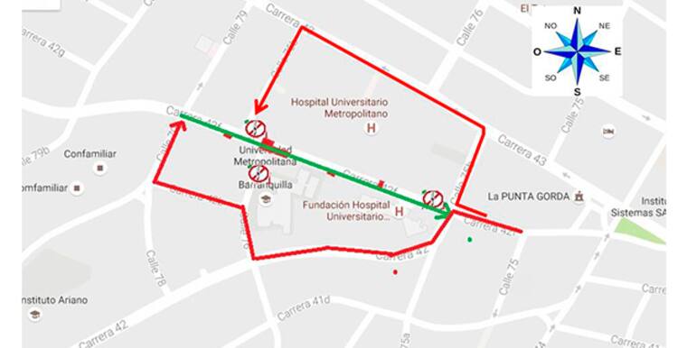Los conductores que transitan por la Carrera 44 hacia el Centro, tomarán la Carrera 41 o la Carrera 46 según su conveniencia para continuar hacia su destino. Los que transitan por la Carrera 43 y desean tomar la Calle 53 hacia la Plaza de la Paz, girarán a la derecha por la Calle 50, doblarán a la derecha por la Carrera 44, cruzarán a la izquierda por la Calle 48 y girarán a la izquierda por la Carrera 46 para continuar hacia su destino. Los conductores que transitan por la Carrera 45 hacia la Calle 72, tomarán la Carrera 43 o la Carrera 46 según su conveniencia.