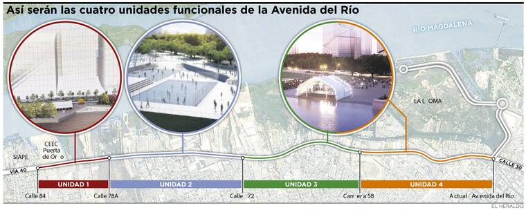 Mientras que las dos últimas unidades van desde la calle 72 hasta la calle 58 y desde la calle 58 hasta el sector de La Loma, donde empalmará con la actual Avenida del Río.