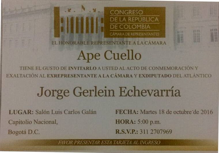 El Congreso de la República rendirá homenaje póstumo al excongresista Jorge Gerleín Echeverría este martes en Bogotá.