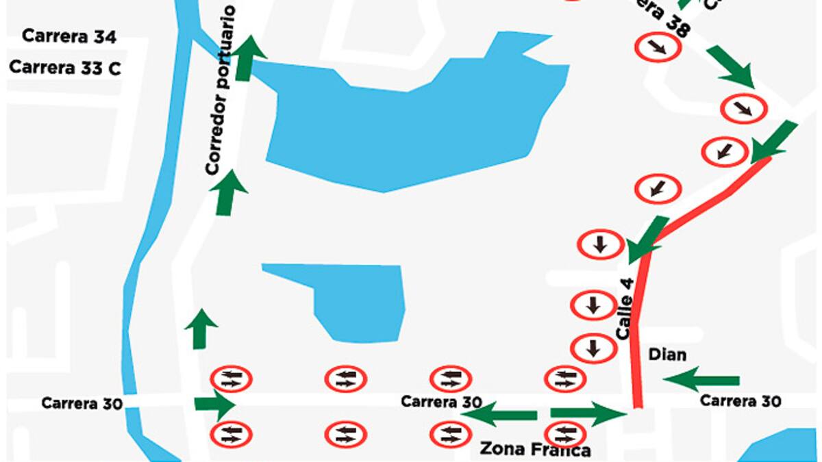 La única vía disponible para salir de la zona portuaria es la carrera 30. Movilidad advirtió que está prohibido el estacionamiento sobre las vías, por lo que la Policía de Tránsito podrá aplicar sanciones.