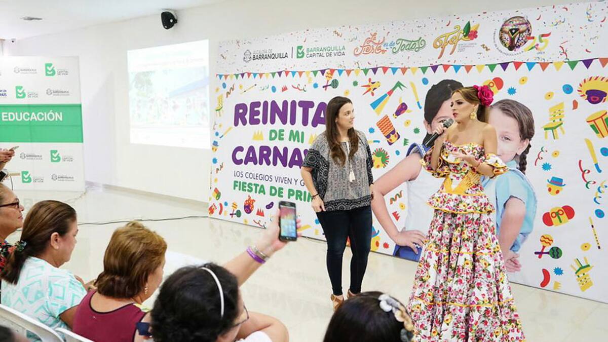 La Reina del Carnaval de Barranquilla, Stephanie Mendoza Vargas se tomó las aulas barranquilleras junto a la secretaria de Educación, Karen Abudinen, para escoger los 50 colegios que participarán en 'Reinitas de mi Carnaval'.