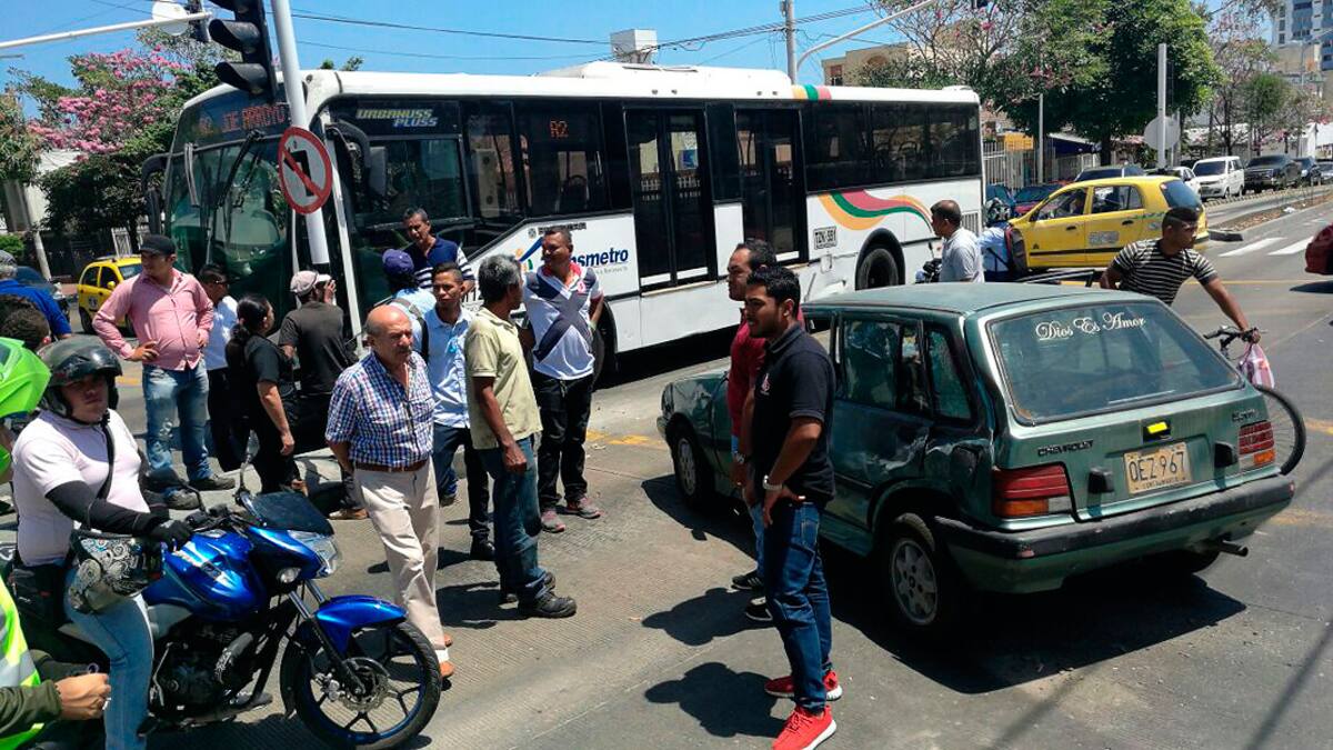 Un bus de Transmetro colisionó con un vehículo particular durante la tarde de este jueves a la altura de la avenida Olaya Herrera con calle 69.