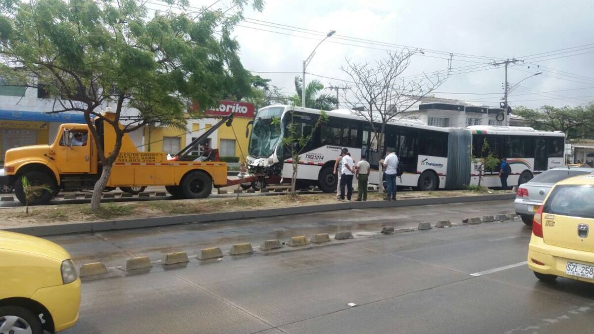 Tres buses de la empresa de transporte masivo de Barranquilla, Transmetro, colisionaron la mañana de este martes en la avenida Murillo con carrera 14, en el sur de la ciudad.