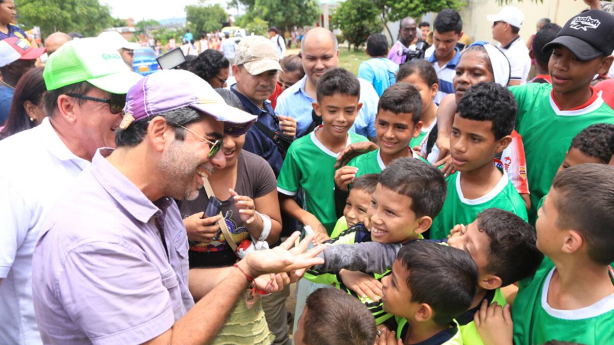 Rodeado de la comunidad de los barrios, especialmente de niños vestidos con uniformes deportivos, el Alcalde de Barranquilla, Alejandro Char, hizo entrega de dos lugares recreativos en la localidad Suroccidente.