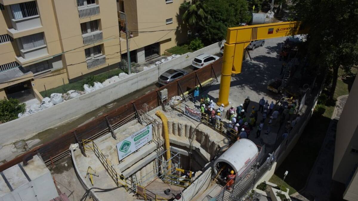 'A medida que la máquina va excavando, los tubos de concreto se bajan de la superficie del pavimento hacia el túnel de seis metros de profundidad y el gato, que tiene un empuje de 1.700 toneladas, va empujando la tubería consecutivamente. Todo va como un tren, el uno empuja al otro', indicó.