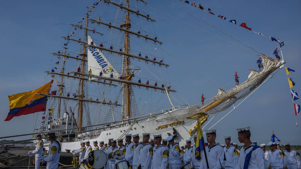 El adiós al velero insignia de la Institución Naval se dio en la tarde de ayer, en medio de una solemne ceremonia militar, muy parecida a la celebrada durante su recibimiento, entre el silencio por los héroes caídos y la bendición del capellán para que puedan regresar a casa a salvo, superando las adversidades del mar.