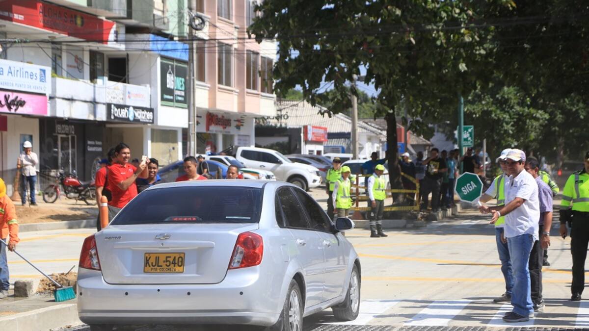 El alcalde Alejandro Char, en compañía de los secretarios de Obras Públicas, Rafael Lafont, y Transito y Seguridad Vial, Fernando Isaza, dieron paso a la circulación vehicular en ambos sentidos de esta importante vía.