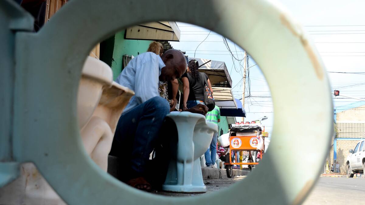 Los Diablitos siguen de fondo con su tema Quién perderá. El sonido sale de un minicomponente azul con gris, acomodado en la misma repisa de madera en la que hay arrumados decenas de inodoros de diversos colores, tamaños y formas. Casi todos tuvieron ya una vida útil, pero hoy esperan ‘reencarnar’ en otros baños.