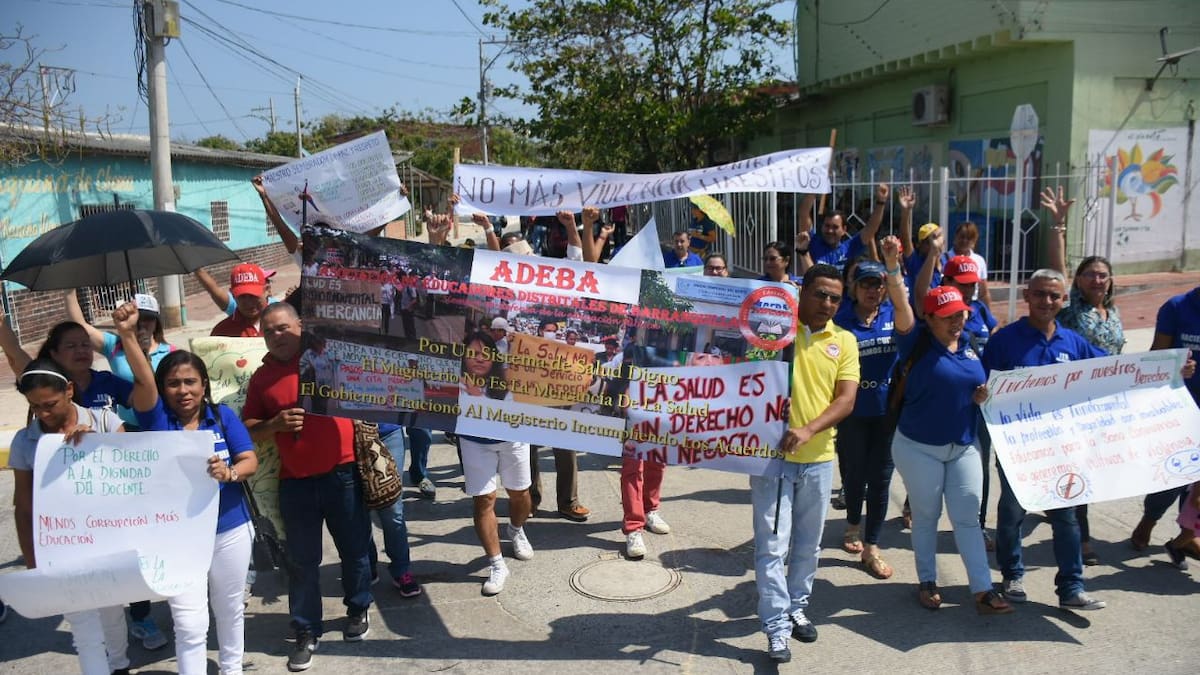 Los educadores que hacen parte de Asociación de Educadores de Barranquilla, Adeba, marchan hasta la Circunvalar como parte del paro nacional convocado por la Federación Colombiana de Educadores, Fecode.