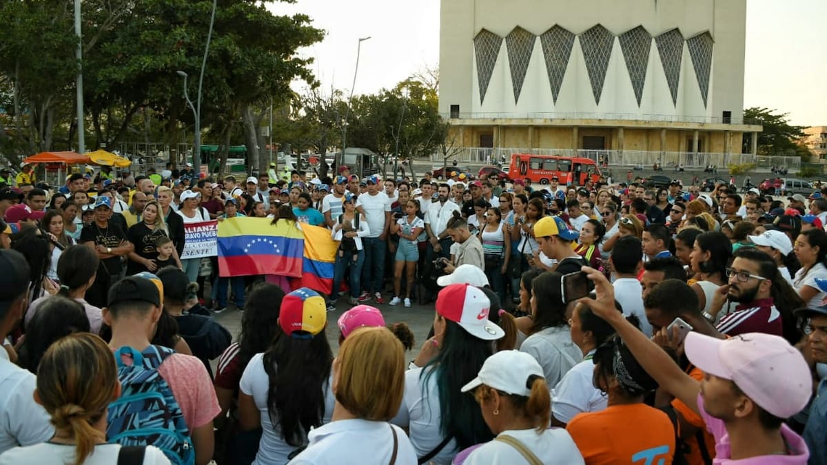 Entonando 'Gloria al Bravo Pueblo', cientos de venezolanos se dieron cita la tarde de ayer en la Plaza de la Paz de Barranquilla, para mostrar su apoyo al presidente de la Asamblea Nacional de Venezuela, Juan Guaidó, quien en las últimas horas se proclamó presidente (e) del vecino país.