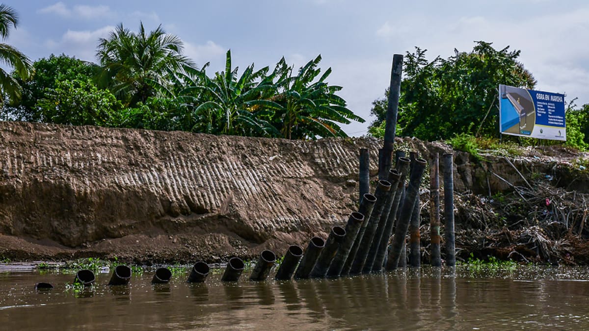 Desde una lancha sobre el río se aprecia además decenas de pilotes de hierros grandes derribados. 'Esos los pusieron solo hace 8 días y ya se cayeron', dice el conductor de la embarcación.
