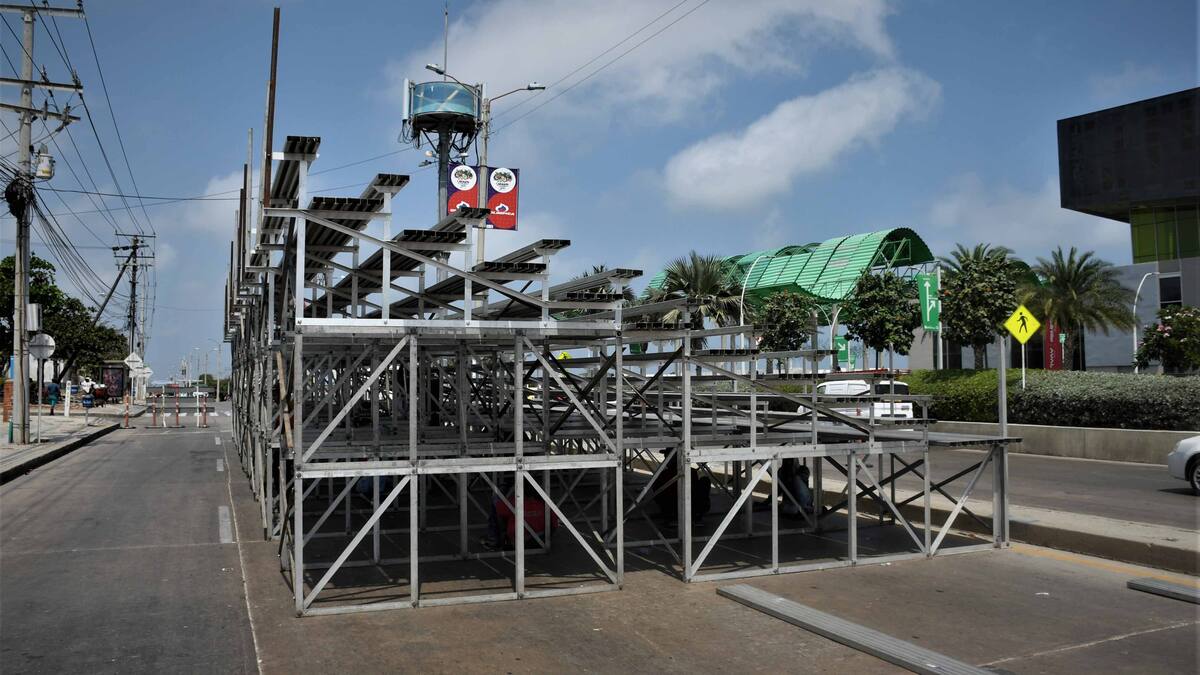 Ayer, frente al Centro de Eventos Puerta de Oro, se levantó la primera de las tribunas móviles que año tras año se plantan para acoger a miles de turistas y barranquilleros.