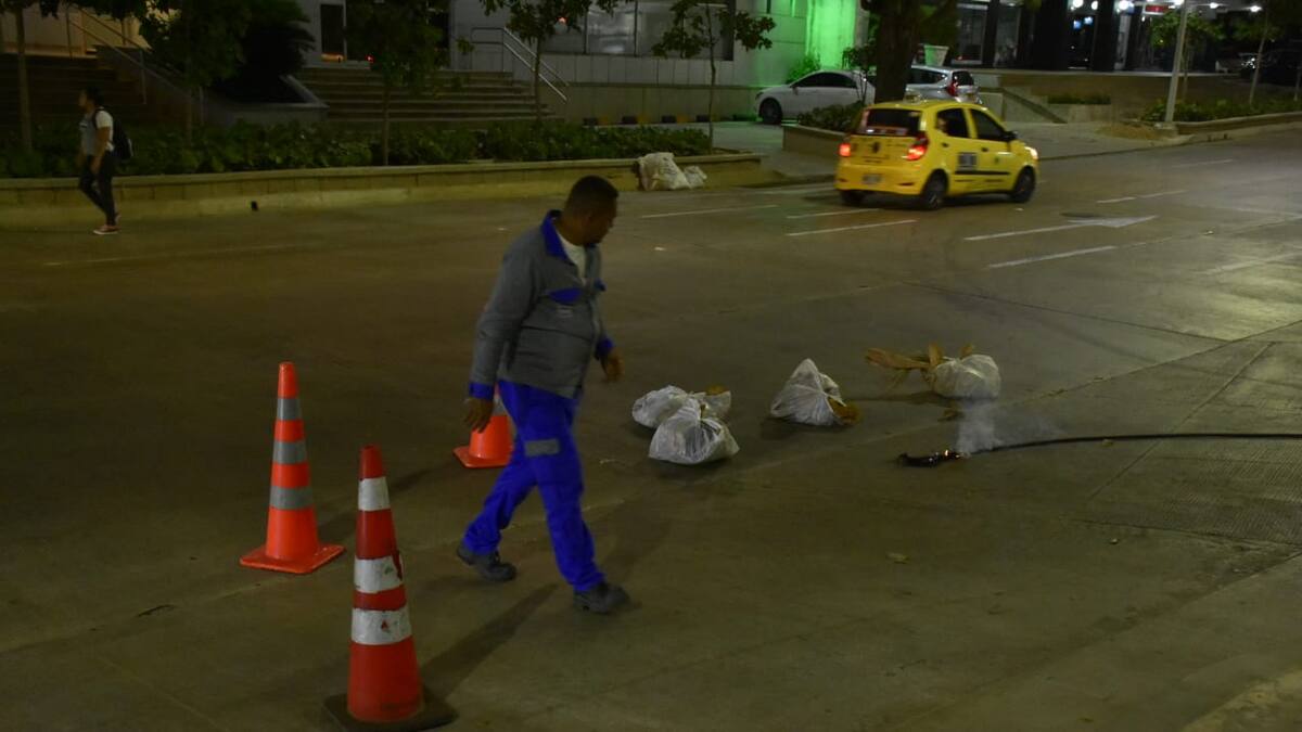 Un camión de Electricaribe llegó hasta el lugar para cortar el suministro de energía del cable, lo que dejó la zona sin luz.