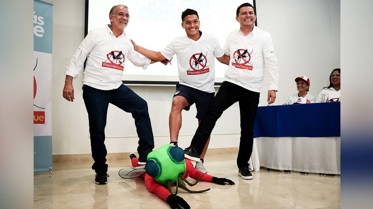 El lanzamiento de la estrategia se efectuó en la tarde de ayer y contó con la presencia del jugador del Junior Teófilo Gutiérrez, quien se puso una camiseta que tenía grabada la etiqueta #Nomásdengue, además de emitir unas recomendaciones.