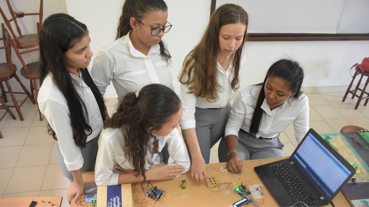 Katy Díaz, Annie Ángulo, Daniella Rojas, Valeria Ledesma y Laura Escorcia son cinco jóvenes de grado 11 del colegio Eucarístico de La Merced, de Barranquilla, que encontraron una forma de incluir a las personas con discapacidades visuales y auditivas en todas las conversaciones y aspectos de la vida.