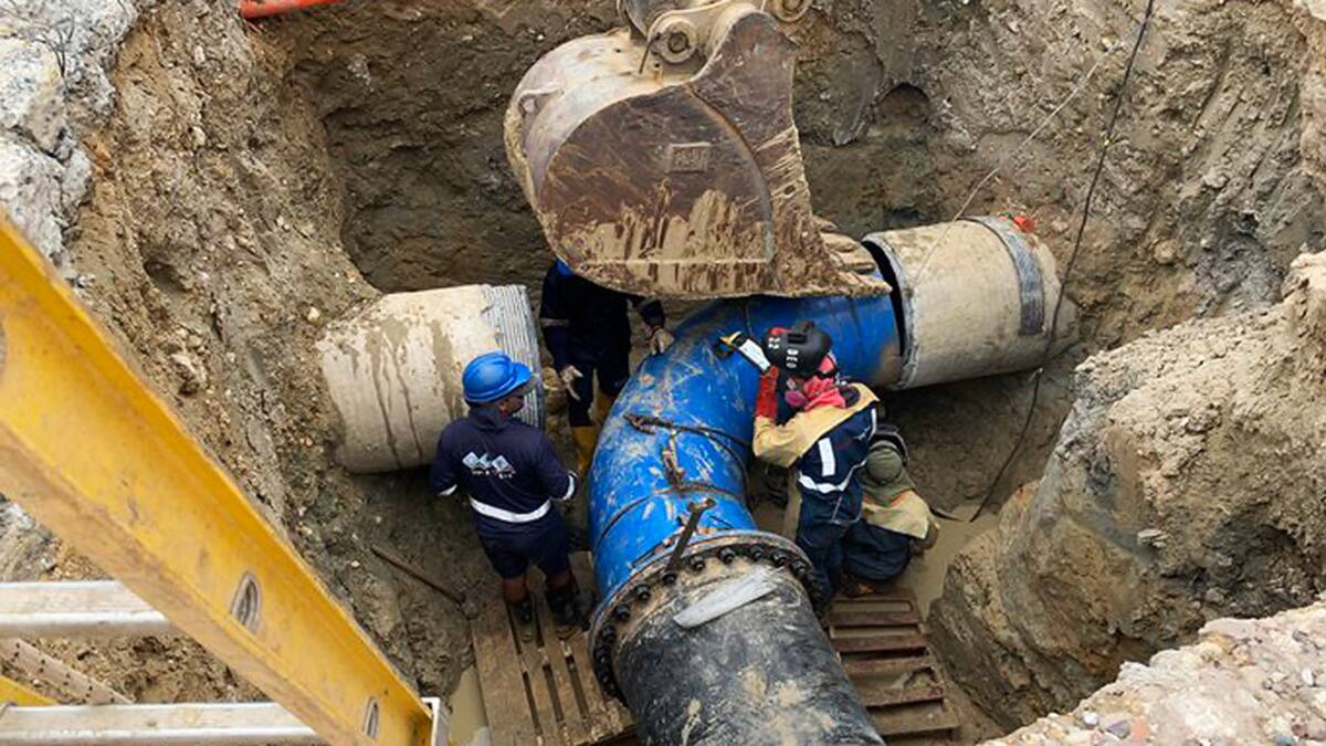 'Reportamos desde Puente Vallejo en el barrio Rebolo, donde estamos realizando el empalme de una nueva tubería de 36. Cada uno de nuestros trabajos busca mejorar la distribución de agua a los hogares de nuestros usuarios', trinó la empresa de acueducto.