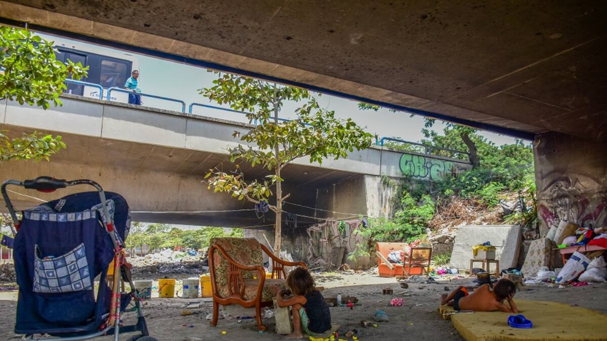 El grupo se encuentra a la intemperie, siendo la plataforma del puente el único techo de las familias. Los colchones están sobre bolsas, y los alimentos los cocinan en tres fogones de leñas. Viven en medio de basura y escombros que a diario son arrojados en la zona.