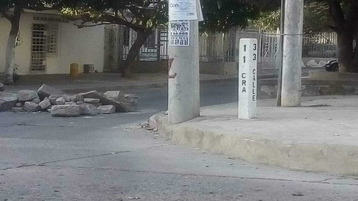 En el barrio Las Palmas una habitante de la calle 33 con carrera 11 denuncia que vecinos de la misma zona decidieron colocar unas piedras para evitar el tráfico vehicular incrementado por las obras en la calle 30.
