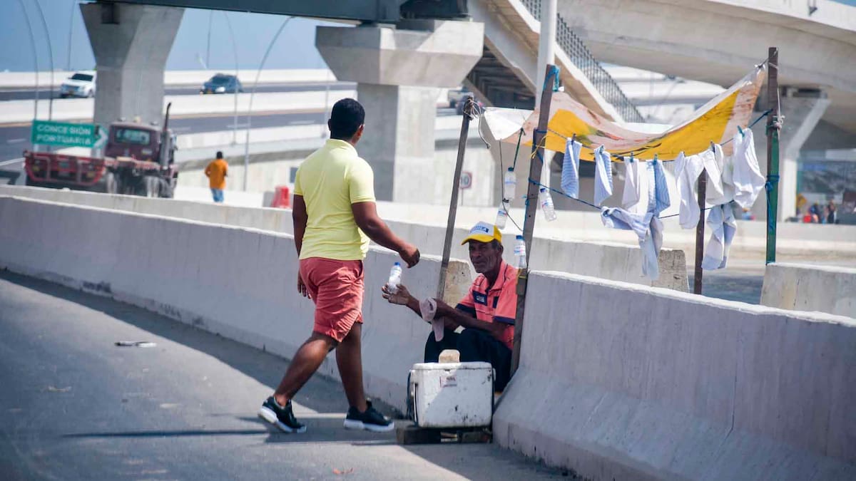 Vendedores de chuzo, arepas, bebidas refrescantes y hasta de toallas son algunos de los que se pueden encontrar en los alrededores del viaducto —sobre todo cuando cae el sol—.