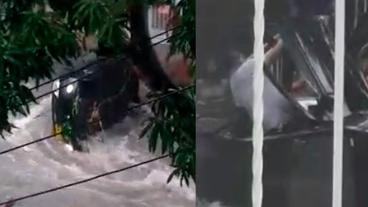 El educador se salvó de morir luego de que el vehículo que conducía por la carrera 9F con calle 45C del barrio La Victoria, fue arrasado por el arroyo que pasa por el sector.