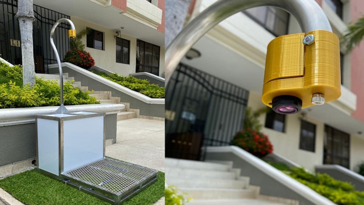El lavamanos con doble funcionalidad que desinfecta manos sin contacto alguno y además, la suela de los zapatos gracias a su sistema de nebulización, fue idea de Luis Felipe Castillo, un ingeniero mecánico de 26 años que en compañía de su hermano y un amigo lograron fabricar un dispositivo funcional.