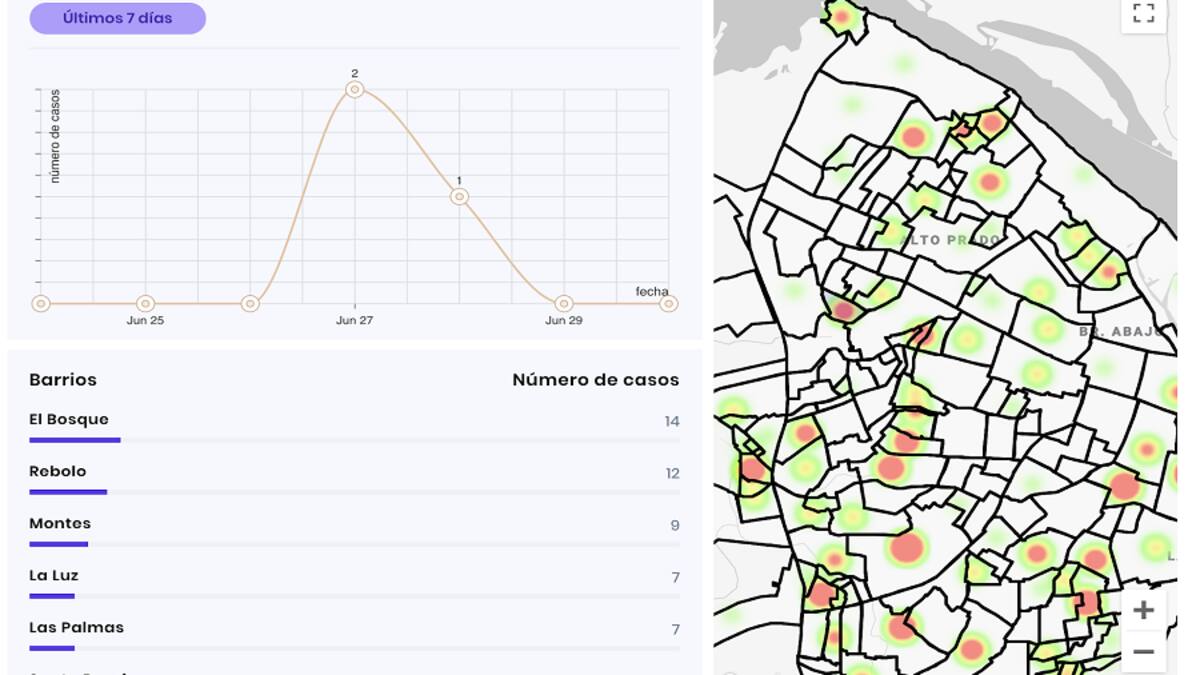 La aplicación web, proporciona estadísticas e imágenes que ilustran los datos en cuanto a situaciones de violencia (riñas, enfrentamientos entre vecinos, atracos, violencia intrafamiliar, violencia de género, etc.) que se presentan en los diversos barrios de la ciudad, en los últimos 7 días de manera gráfica.