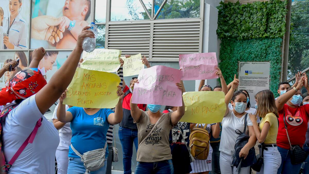 Tras varios meses sin recibir su salario legal correspondiente por su trabajo, médicos, jefes, auxiliares de enfermería y demás personal humano de la Clínica CMI Pediátrica International, ubicada en la calle 84 con carrera 50, alzaron su voz de protesta por medio de un plantón pacifico a las afueras de esta entidad para exigir sus derechos.