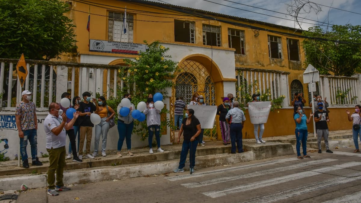 Los estudiantes, profesores, directivos y padres de familia de la IED Camilo Torres Tenorio, ubicada en la carrera 35 con calle 51b del barrio Lucero, se mostraron en desacuerdo con la decisión de trasladarse momentáneamente a otra sede, para dar inicio a las clases presenciales.
