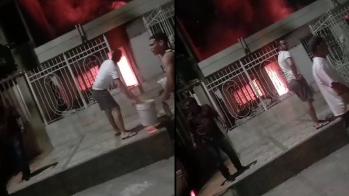 En la grabación de tan solo 5 segundos se observa como algunas personas del sector corren cargando baldes de agua para intentar controlar la fuertes llamas que alcanzaron a cubrir el techo de la vivienda, ubicada en la calle 35A con carrera 7F.