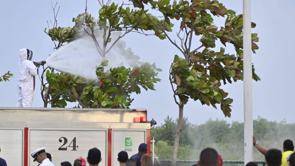 El tradicional desfile militar del 20 de Julio se vio interrumpido momentáneamente a causa de un panal de abejas ubicado en uno de los árboles en la Avenida del Río.