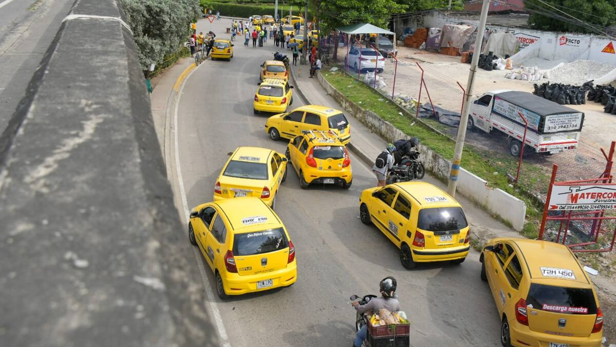 En la Carrera 38 con Avenida Circunvalar se mantiene el bloqueo de conductores de taxi.