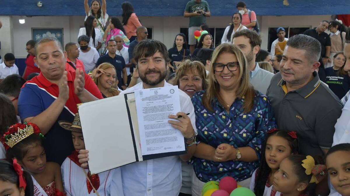 El alcalde Jaime Pumarejo fue el encargado de presidir el encuentro que contó con la presencia del cuerpo estudiantil, docentes y miembros del Concejo Distrital, quienes aprobaron el acuerdo hace unos días.
