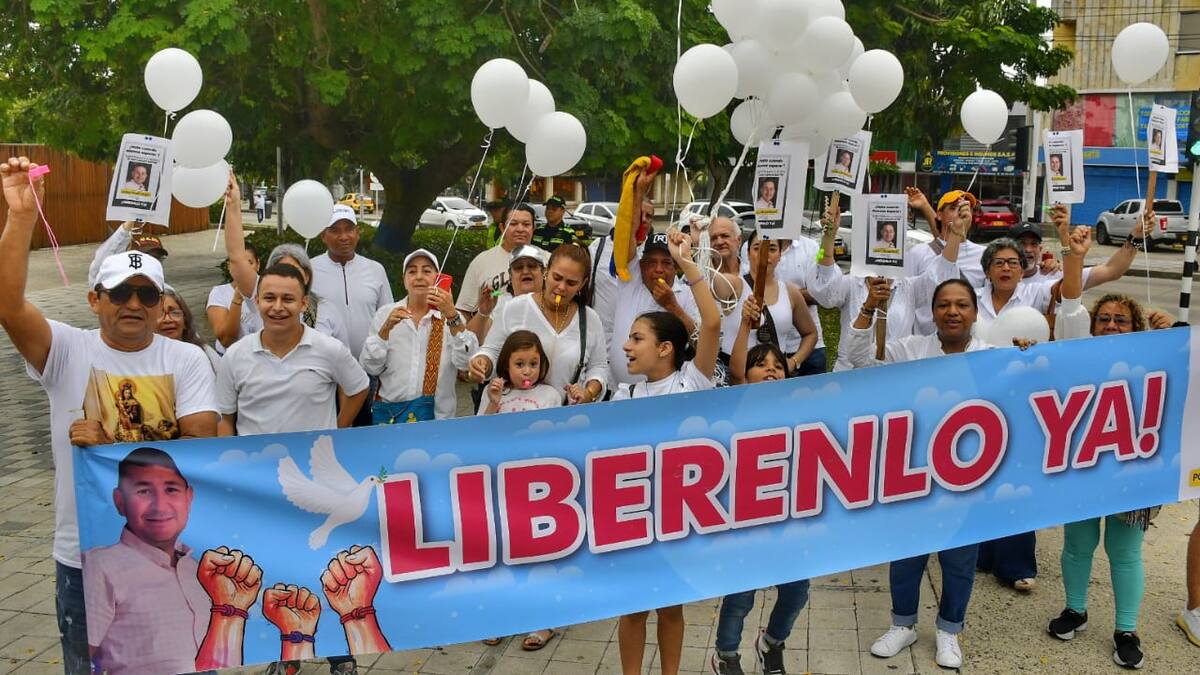 Con camisetas blancas, globos blancos y con el lema 'Libérenlo ya', se realizó en Barranquilla una marcha por la pronta liberación de Juan Carlos Bayter Bustamante, el odontólogo secuestrado el pasado 18 de octubre en el barrio Pueblo Nuevo, en el municipio de El Banco, Magdalena.