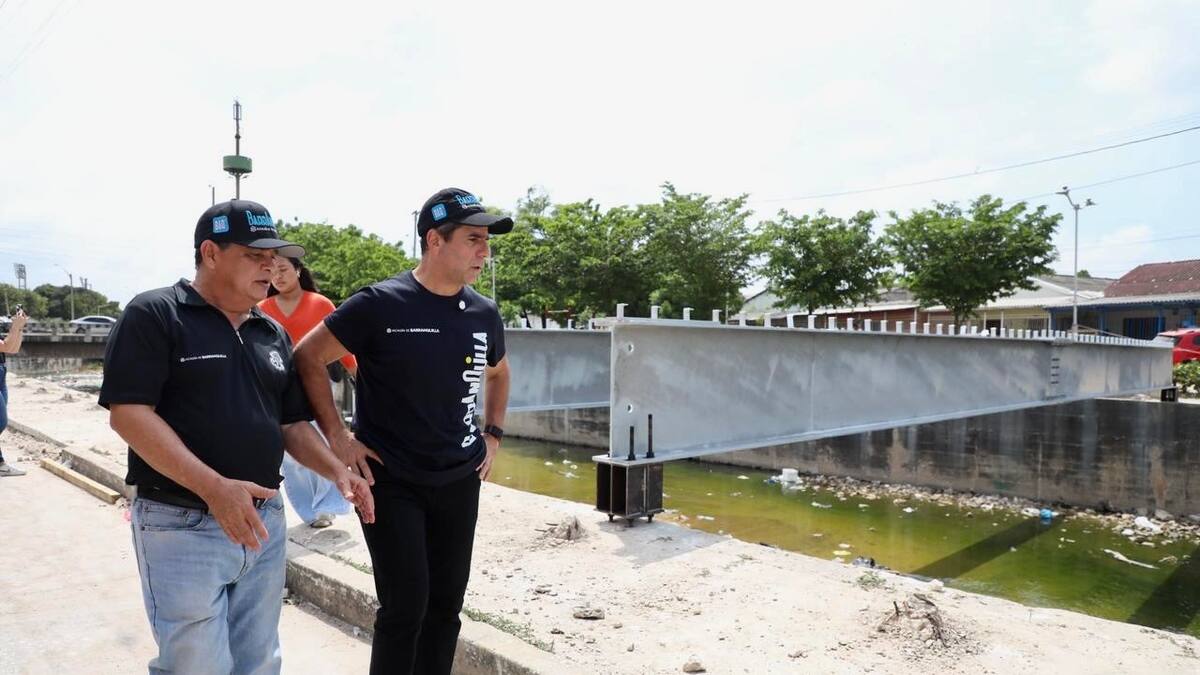 Este sábado, el alcalde de Barranquilla, Alejandro Char realizó una visita de supervisión a las obras de instalación de vigas para canalizar el arroyo de Rebolo.