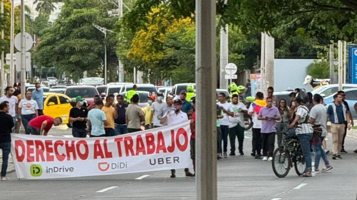 En la tarde de este viernes, un grupo de conductores de aplicaciones de transporte adelantan una protesta por varias vías del norte de Barranquilla.