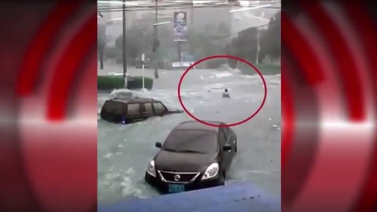 Vea en este video aficionado cómo el ciudadano Jaime Atencia, quien se rebusca en oficios varios de forma independiente, rescató este miércoles a un hombre que era arrastrado por el arroyo de la calle 76 con 53.