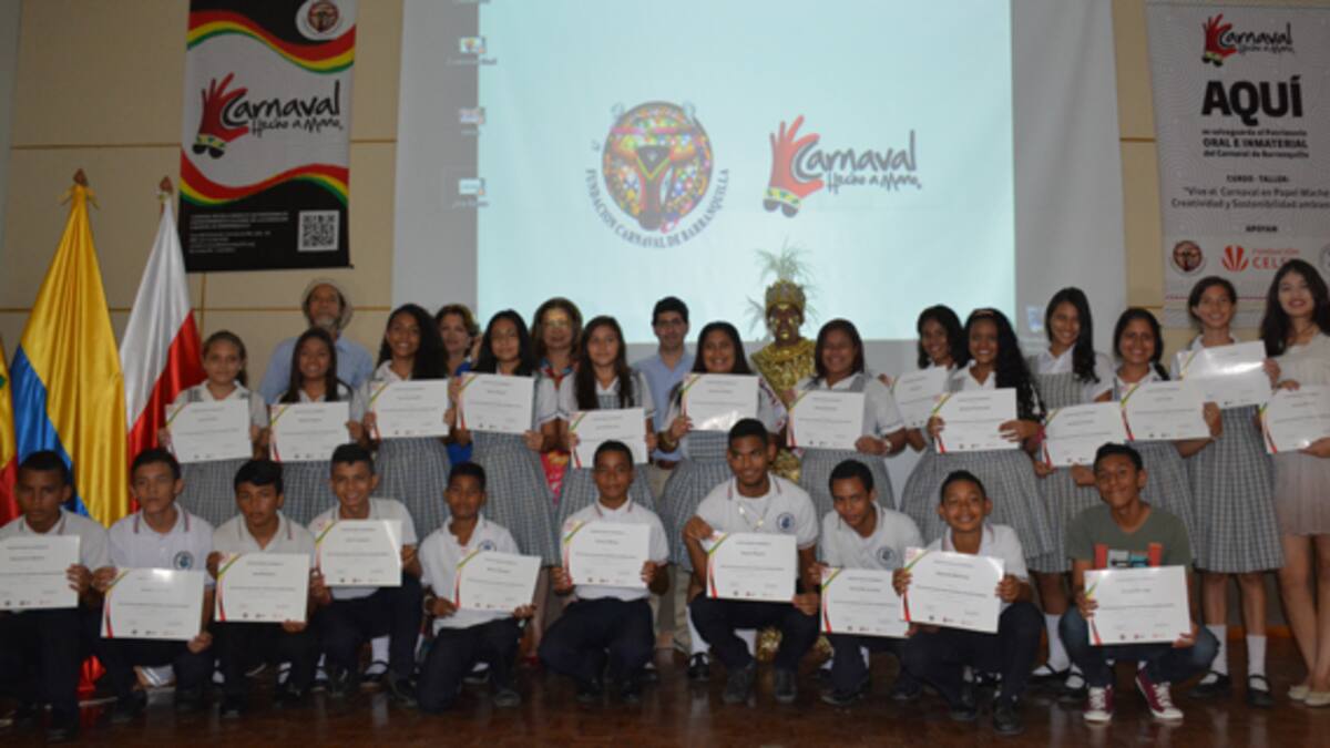 Junto al galapero estuvieron los creadores de las carrozas de este años y 27 jóvenes participantes del taller ‘Vive el Carnaval en papel maché’, quienes fueron condecorados en el evento de posicionamiento del programa Carnaval hecho a mano, el cual se viene gestionando desde hace cinco años.