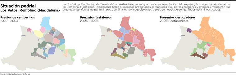 La Unidad de Restitución informó que esas propiedades están hoy en cabeza de Pedro Gamarra Sierra, hermano del excongresista José Gamarra, electo en alianza con Dieb Maloof con un gran caudal electoral por la parapolítica, tanto en Remolino como en otros pueblos, como lo sentenció la Corte Suprema.