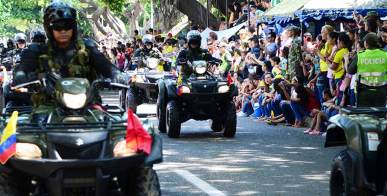 El desfile por la celebración de los 206 años de independencia, en Riohacha, mostró el colorido de las diferentes fuerzas, el respaldo de los guajiros al Ejército y la Policía y el acompañamiento a las autoridades civiles. El desfile partió desde el parque Simón Bolívar, donde fue colocada una ofrenda floral al prócer, continuó por la avenida Circunvalar hasta culminar en el parque Féderman.