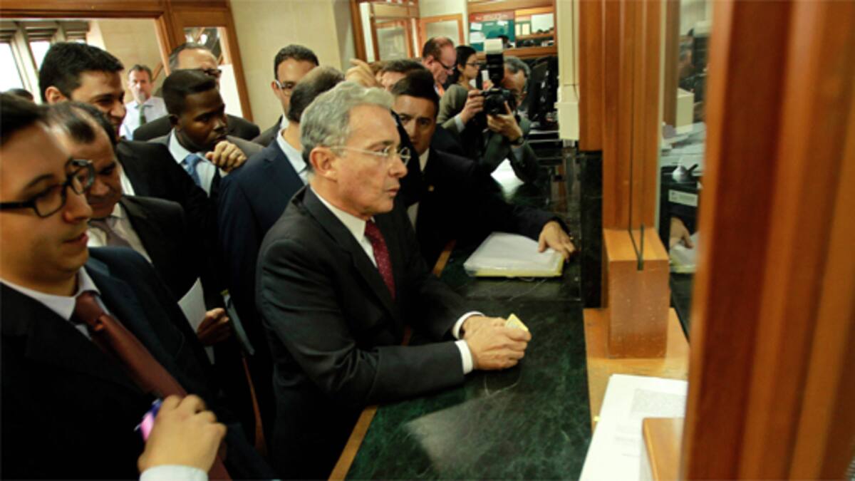 Uribe se presentó acompañado de su escolta y de sus compañeros de partido.