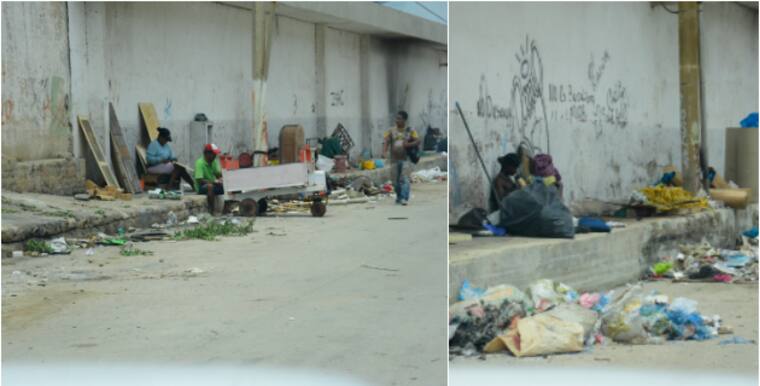En las largas noches y las mañana pesadas, se pueden encontrar grupos de indigentes que utilizan carretillas y algunos espacios de un andén para dormir.