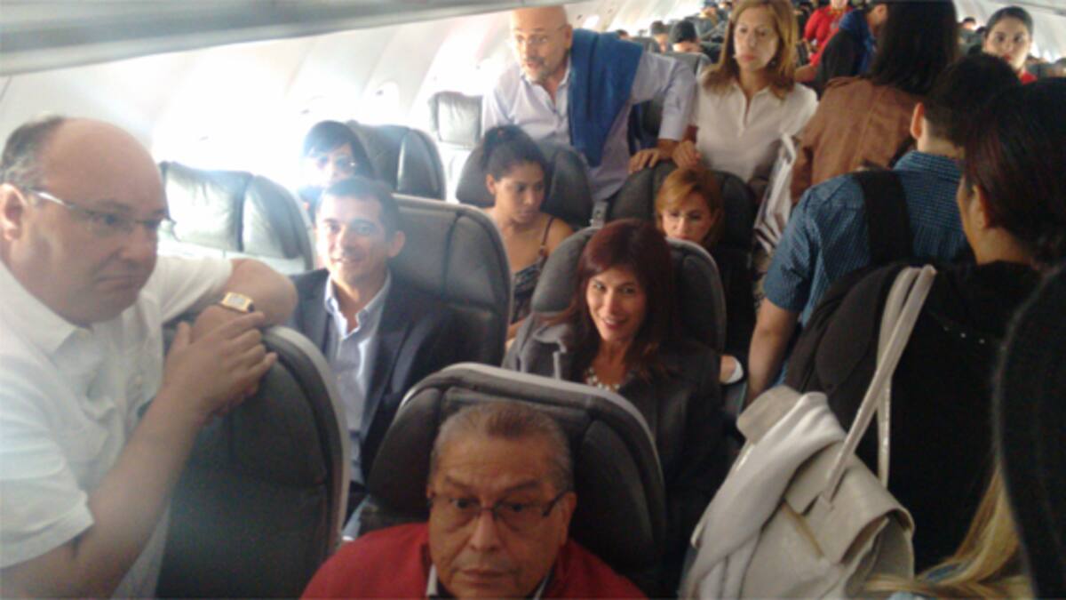 En su fila, la 8, a dos sillas de la cortina, compartía el triunvirato de asientos con el director de la Agencia Nacional de Infraestructura, ANI, Luis Fernando Andrade, a su lado, y con el director de Infraestructura del Ministerio, Carlos Sarabia, en la ventanilla. Con el primero revisó durante todo el vuelo el informe de inversiones del sector en el departamento, mientras la azafata le preguntaba: '¿Ministra, agua, jugo o café?', y el jefe de cabina le hacía una deferencia al final: '¿qué tal el vuelo, ministra?'.